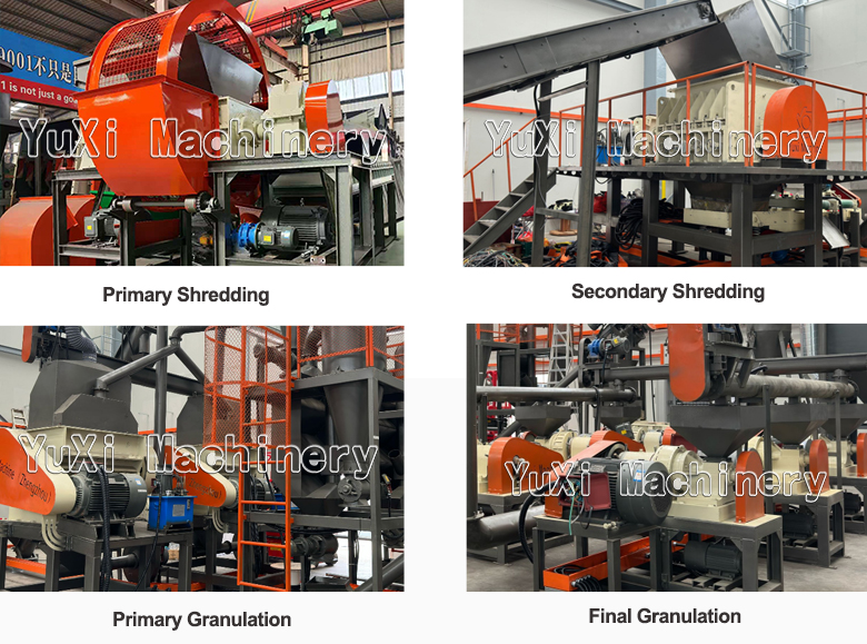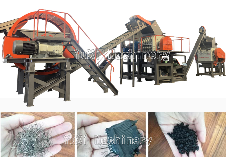 Yuxi machinery offers an end-of-life tire recycling system designed to maximize throughput while maintaining precise control over particle size and quality with chips perfectly sized for producing TDF,rubber granules and powder. This comprehensive system efficiently processes tires through multiple stages, ensuring consistent and high-value output.